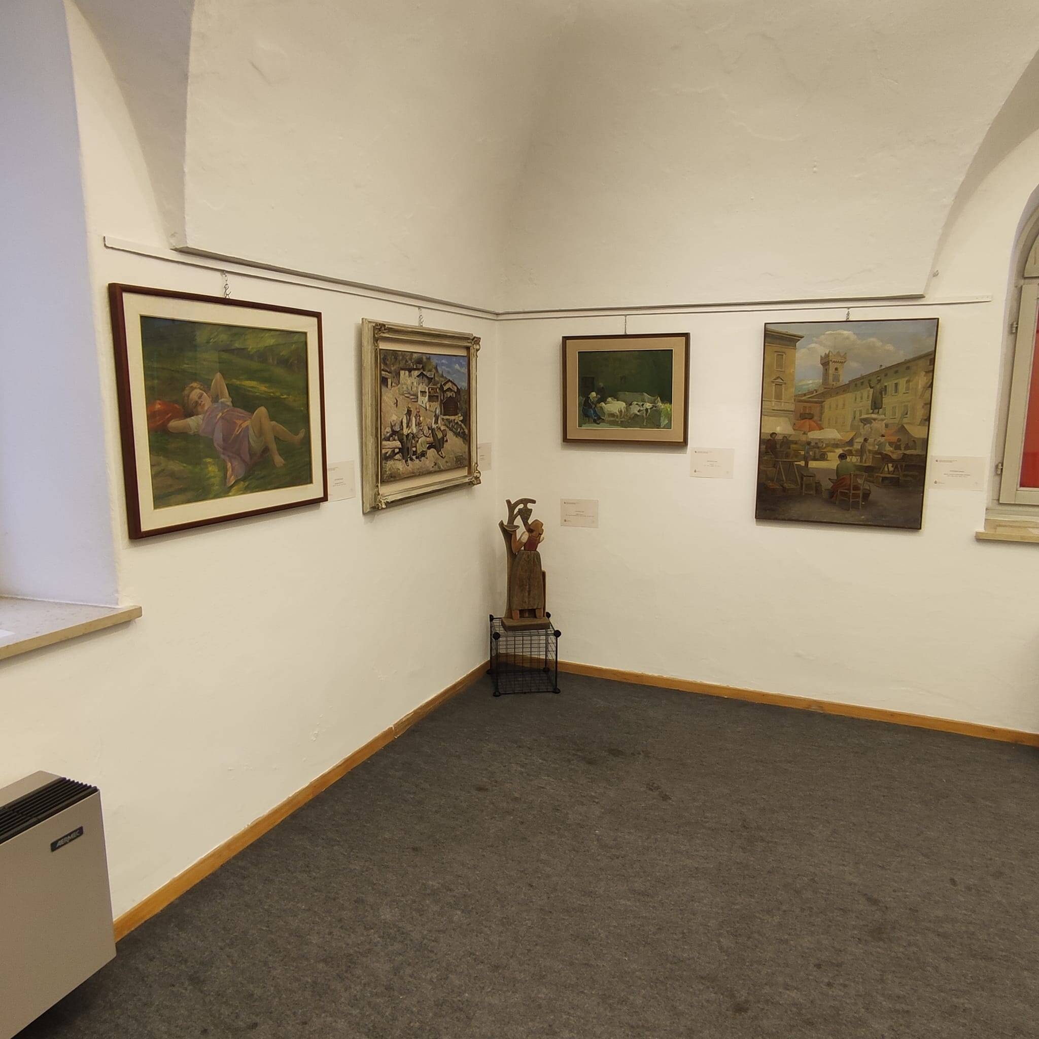 La mostra “Il Trentino Alto Adige Südtirol: Il cammino dell’autonomia attraverso il suo territorio, i suoi borghi, le sue genti” voluta e sostenuta dall’Assessora Regionale al Patrimonio Waltraud Deeg e dalla Giunta Regionale, presenta l’esposizione di 82 opere di 52 artisti locali o che hanno voluto, omaggiare la nostra regione. Le opere sono una parte della Collezione della Regione Trentino Alto Adige/Südtirol che conta poco meno di 2000 pezzi, molti di grande pregio quali i Depero e il Dallabrida qui esposti. Attraverso queste tele e sculture si vuole raccontare la storia della Regione Trentino Alto Adige e celebrare il territorio regionale con le sue montagne, in gran parte dichiarate patrimonio dell’Umanità dall’UNESCO, le sue risorse naturali, il legname delle foreste alpine, i corsi e specchi d’acqua pura provenienti da ghiacciai e nevai perpetui e dai picchi rocciosi, con la terra e i suoi prodotti. Terra con la quale l’uomo ha stretto un connubio di mutuo e reciproco rispetto. Terra che fornisce all’uomo i prodotti per il suo sostentamento: vino, olio, frutta, ortaggi, grano, e fieno per gli animali. Uomo che ha costruito le sue case rispettando al massimo l’ambiente perché conscio che questa è la sua vera casa. Quindi gli isolati masi, i ridenti borghi alpini, le piccole città a misura d’uomo, si inseriscono in un ecosistema che cerca di mantenere inalterati degli equilibri fondamentali per l’uomo e per il territorio. Equilibri che si ritrovano nella pacifica convivenza di gruppi linguistici diversi: italiano, tedesco, ladino, mocheno, cimbro.