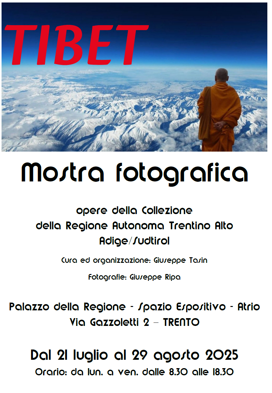 TIBET è una riproposizione veduta e corretta della mostra allestita nel 2006 presso la Sala di Rappresentanza del Consiglio Regionale di Trento, dove Giuseppe Ripa ha messo a disposizione 52 fotografie scattate tra il 1999 e il 2002 e che compongono un reportage di viaggio nel Tibet più vero, quello della spiritualità e della semplicità della popolazione nomade, l’autentica popolazione tibetana che vive sugli altopiani lontano dalle città.