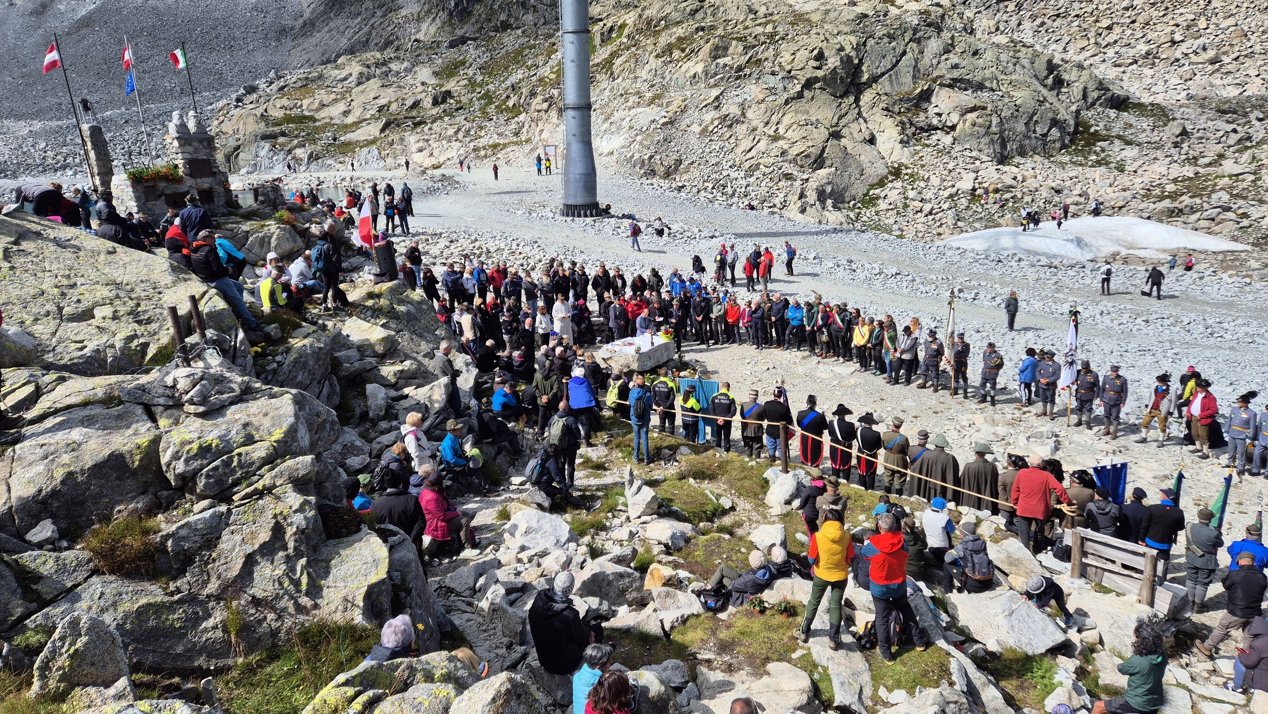 La giornata si è aperta con la sfilata dal Presena e si è conclusa con la cerimonia ufficiale e la Santa Messa, accompagnata dal Corpo Bandistico Ossana Vermiglio e dal Coro Santa Maria Assunta di Tassullo. Presenti autorità locali e provinciali, associazioni ex combattentistiche italiane e austriache, delegazioni di Alpini, Kaiserjäger, Schützen e Standschützen dell’Euregio, oltre al sindaco di Mitterndorf, Thomas Jechne, al Segretario Generale della Croce Nera Austriaca, Thomas Rappatz, e ai rappresentanti istituzionali delle due sponde dell’arco alpino.